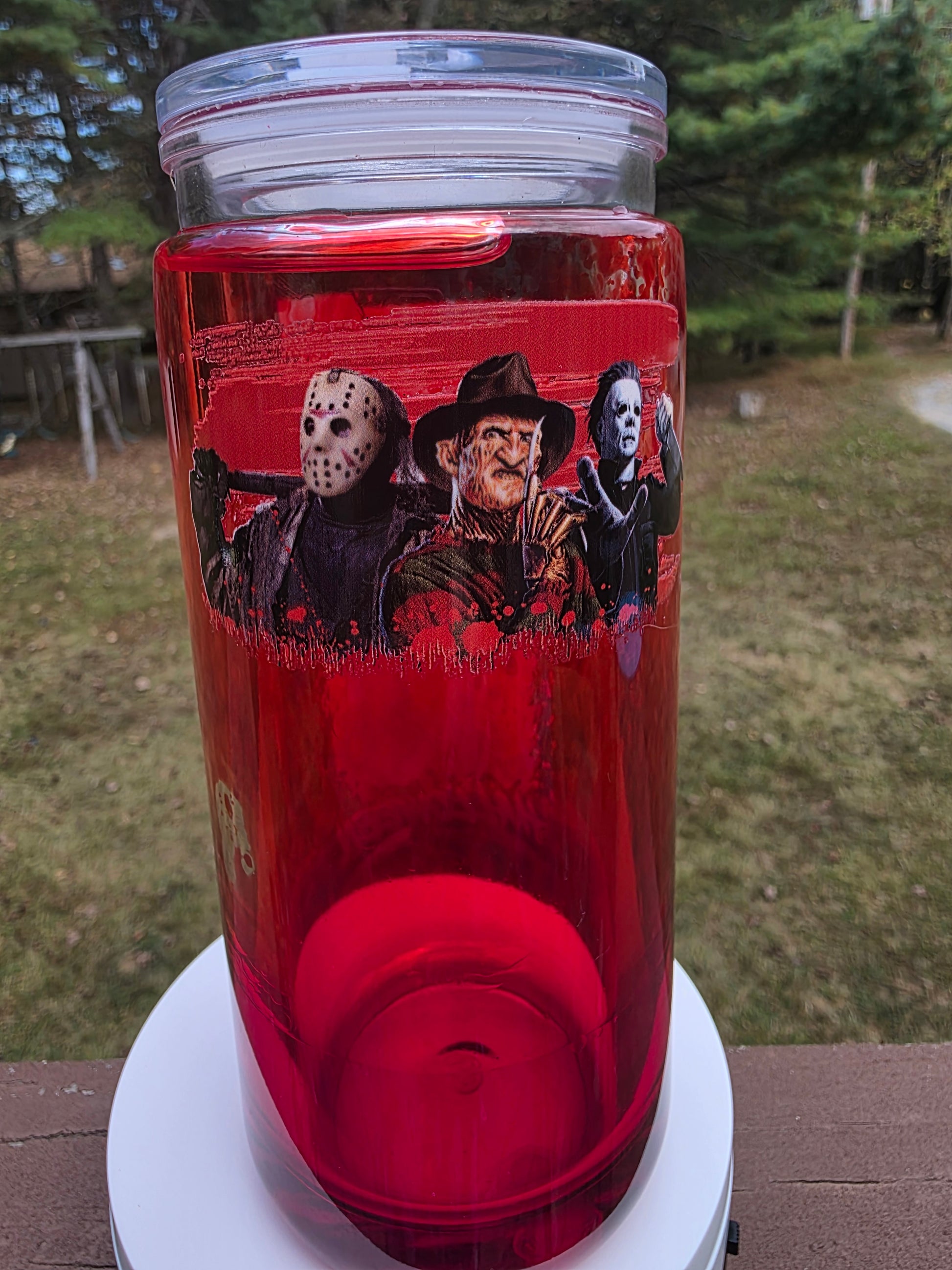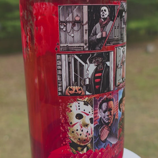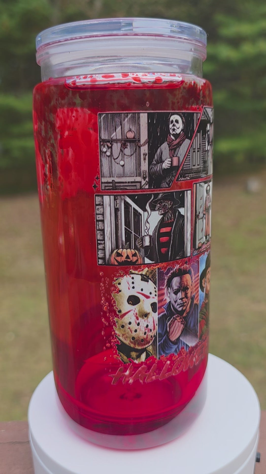 20oz Halloween Horror Blood Drip Snow Globe Tumbler With All Your favorite Character's