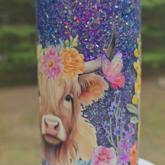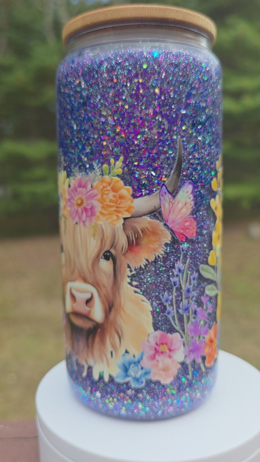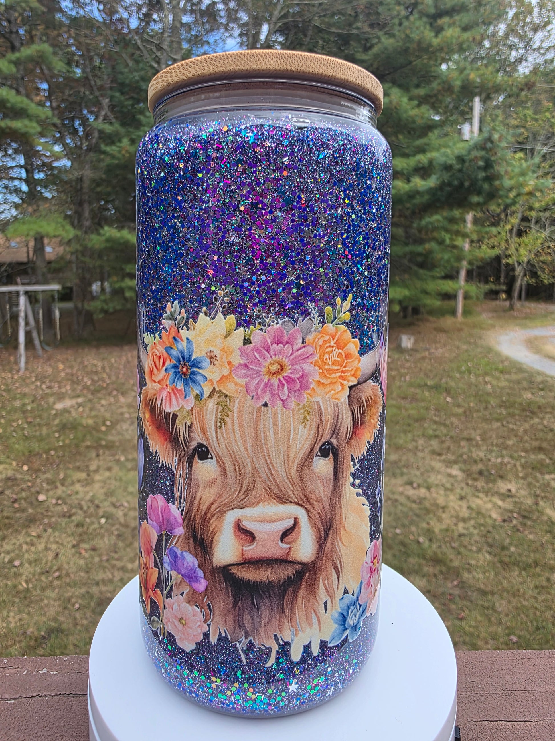20oz Highland Cow Wrap on a Glass SGT with Vibrant Glitter
