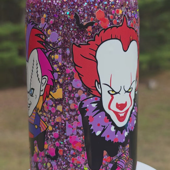 Celebrate Halloween in style with this expertly crafted snow globe tumbler featuring iconic villains in vibrant glitter. Designed to capture the eerie spirit of the season, it combines dazzling visuals with durable construction, making it perfect for your favorite beverages. Whether as a collectible or daily use, this tumbler adds a touch of spooky charm and sparkle to your Halloween festivities.