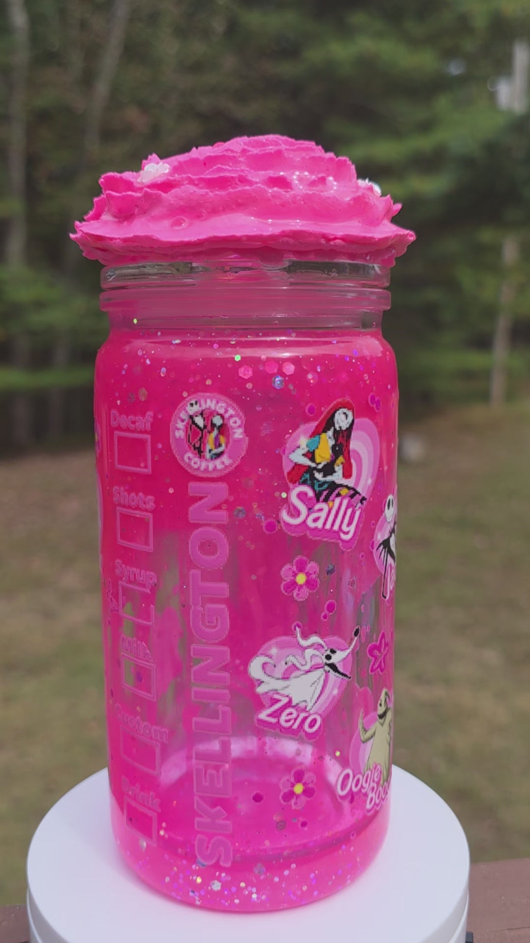 Hot Pink Drip Jack the Pumpkin King With Cool whip Topper Lid